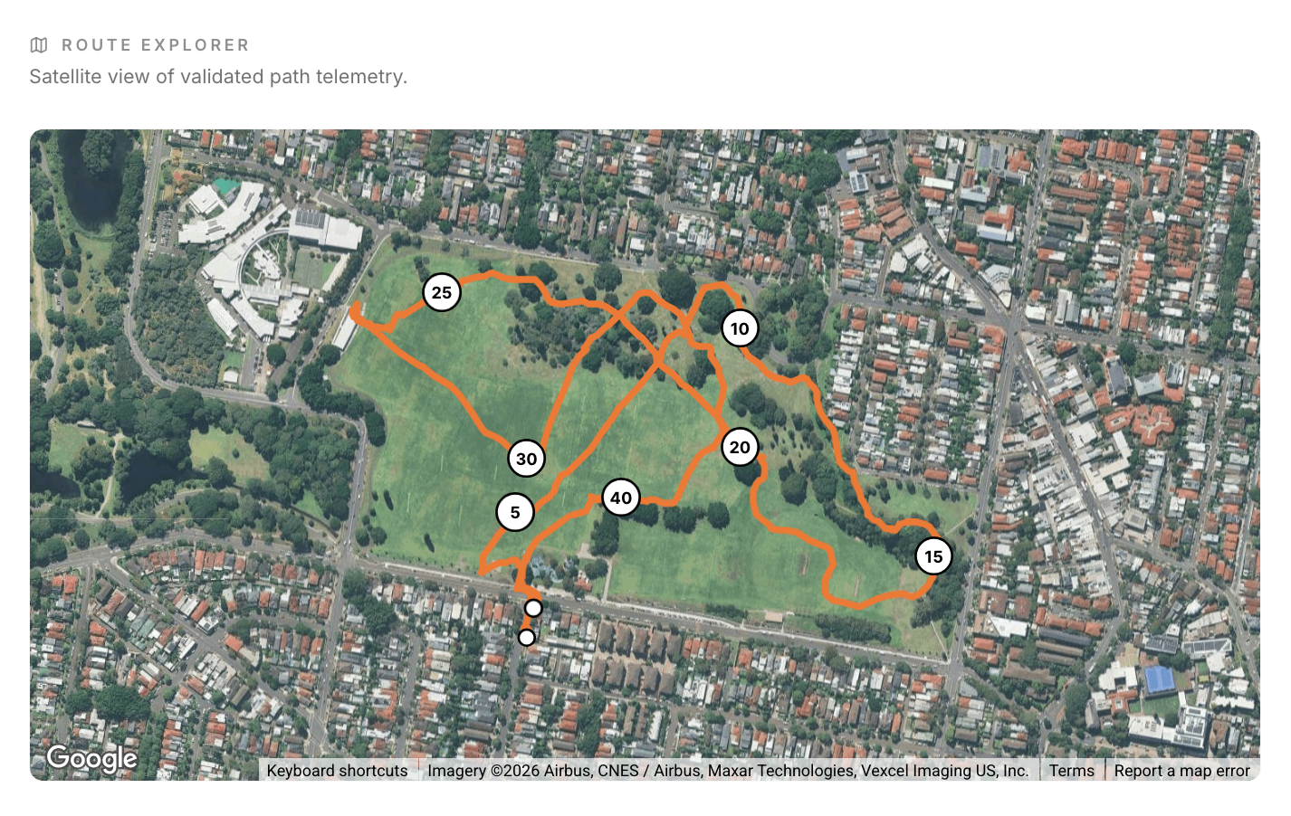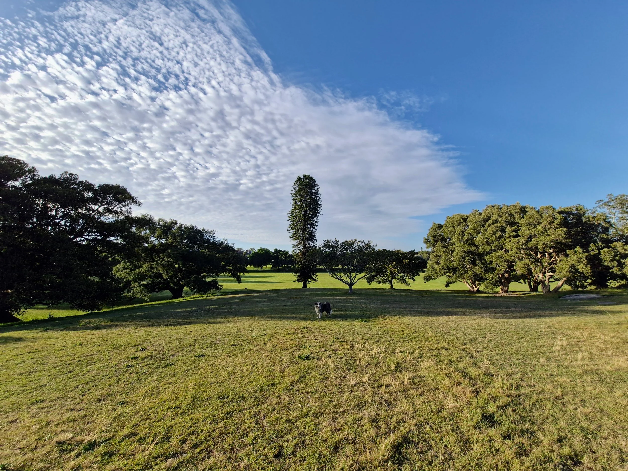 The Queens Park Walk unfolds across gently rising lawns and tree-lined paths that connect the Eastern Suburbs with broad, elevated views toward the city skyline. Unlike Sydney’s exposed coastal tracks, this route feels contained yet expansive, framed by open green space and long sightlines across rolling grass and scattered fig trees. The terrain is steady and rhythmic, with gradual inclines that build mild elevation without intensity, making the movement fluid and continuous.